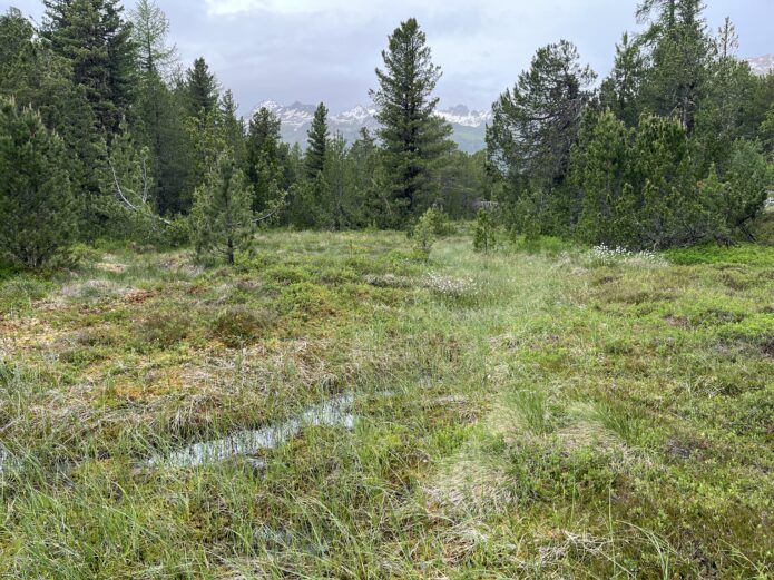 In Moorlandschaft Stazerwald, auf Gebiet der Gemeinde Celerina, mähen Zivildienstleistende seit längerem gezielt Flächen, um die Qualität der Vegetation zu verbessern und eine Erhöhung des Blütenangebots um Hochmoorflächen zu erreichen. Zielart ist der seltene Hochmoorperlmutterfalter (Boloria aquiolonaris). Aufgrund einer Begutachtung der Wirkung dieser Pflege hat oekoskop zusammen mit Josef Hartmann eine Pflegeplanung ausgearbeitet und mit dem Förster abgesprochen. Darin werden die Mahdflächen exakt festgehalten und Massnahmen zur Entbuschung der Hochmoore sowie der Auflichtung der Waldränder vorgeschlagen.